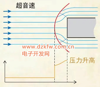對(duì)于可壓縮流動(dòng),流體體積并不守恒。在收縮通道,當(dāng)流動(dòng)處于亞音速,收縮使流體加速,但當(dāng)流動(dòng)處于超音速,情況相反,收縮使氣體減速。為保證單位時(shí)間流過(guò)相同質(zhì)量留檔,下游橫截面小的地方,氣體密度增大很多。由于氣流的壓力信息以音速傳播,亞音速氣流,遇到收縮,上游壓力增大,使氣流加速;超音速氣流,壓力信息無(wú)法即使傳到上游,所以當(dāng)下游收縮時(shí),上游的流體完全得不到通知,仍保持原速度,于是收縮處氣體被堆積起來(lái),使當(dāng)?shù)貧怏w密度和壓力增大,產(chǎn)生逆向壓差力,使收縮處氣流減速。